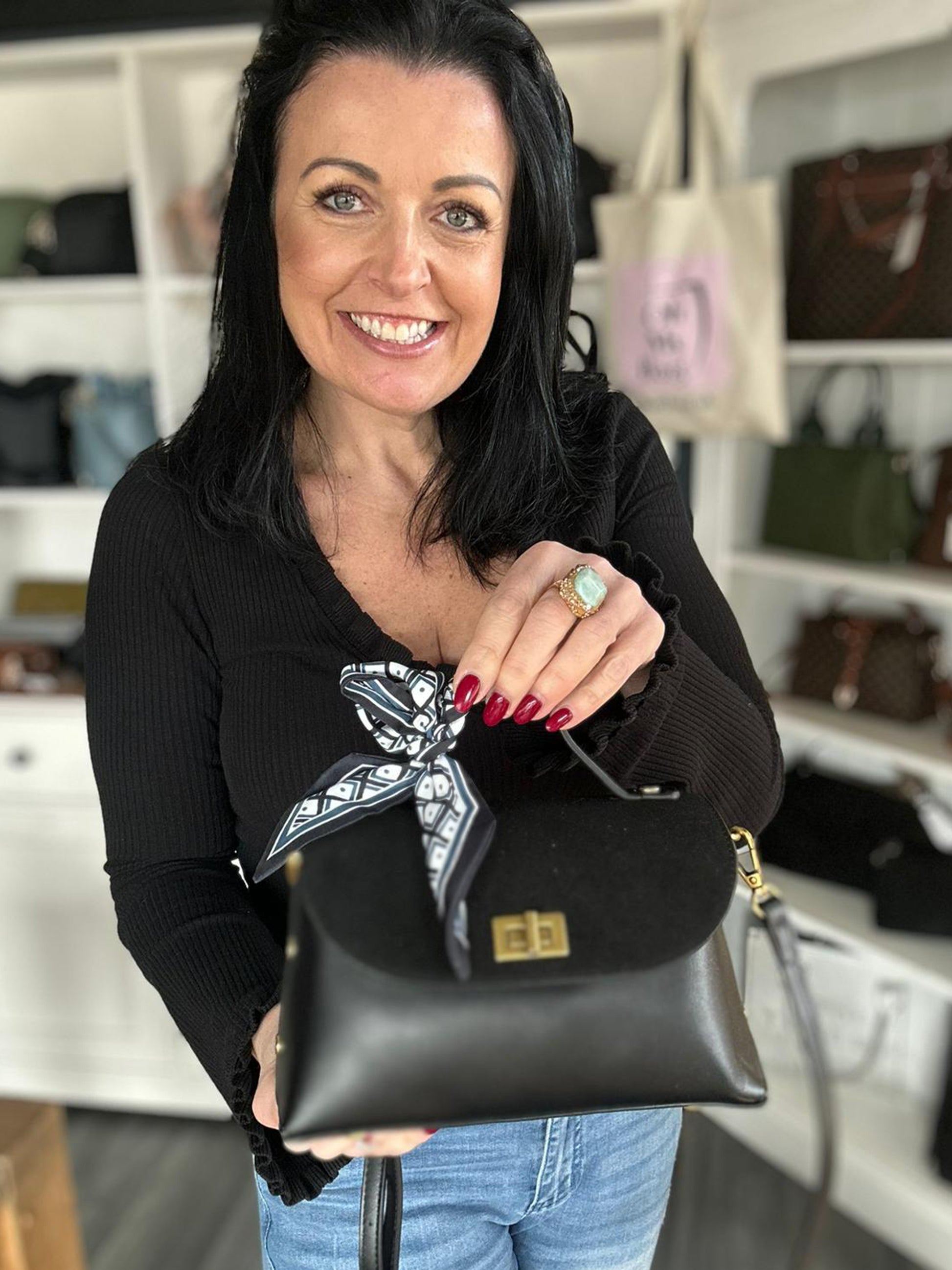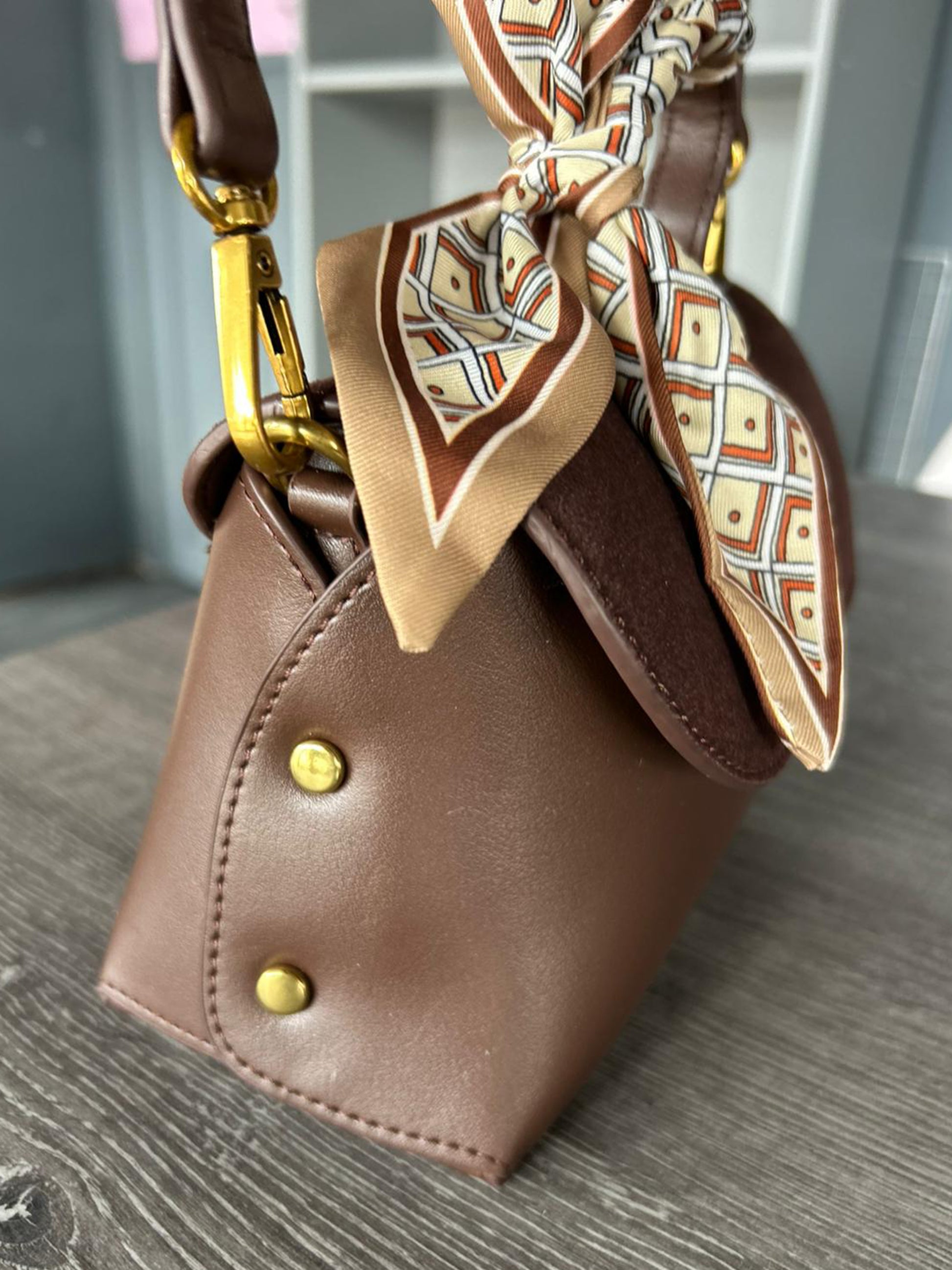 Belle - Faux Leather and Suede Scarf Handle Small Crossbody Bag