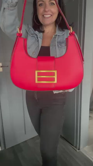 Zip top shoulder bag with inside zip pockets. Adjustable shoulder strap and magnetic clip flap-over. Approx 36 x 25 x 10cm.
