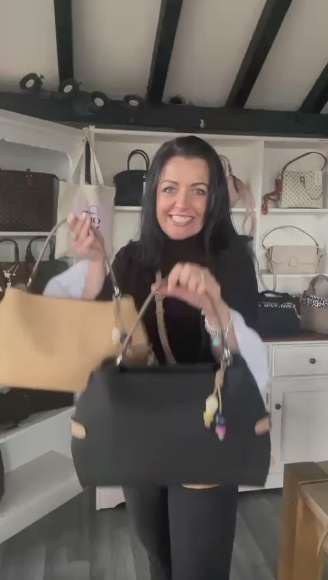2 bag set, shoulder bag plus small crossbody bag. Soft PU material with a woven effect. Shoulder bag has a zip top and bag charm. Small crossbody bag can be attached inside main bag. A long crossbody strap and inside zip pocket. Main bag: 37 x 22 x 12cm. Small crossbody bag: 25 x 14 x 9cm.